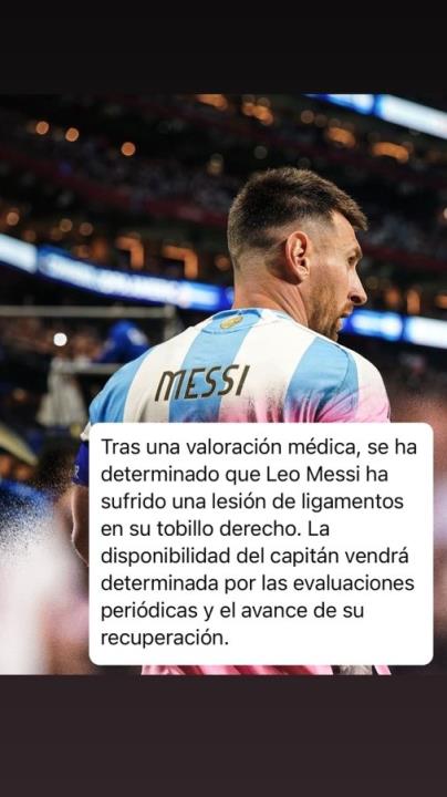 此前迈阿密国际官方消息,梅西右脚脚踝韧带受伤,能否上场将取决于定期评估和恢复情况。
